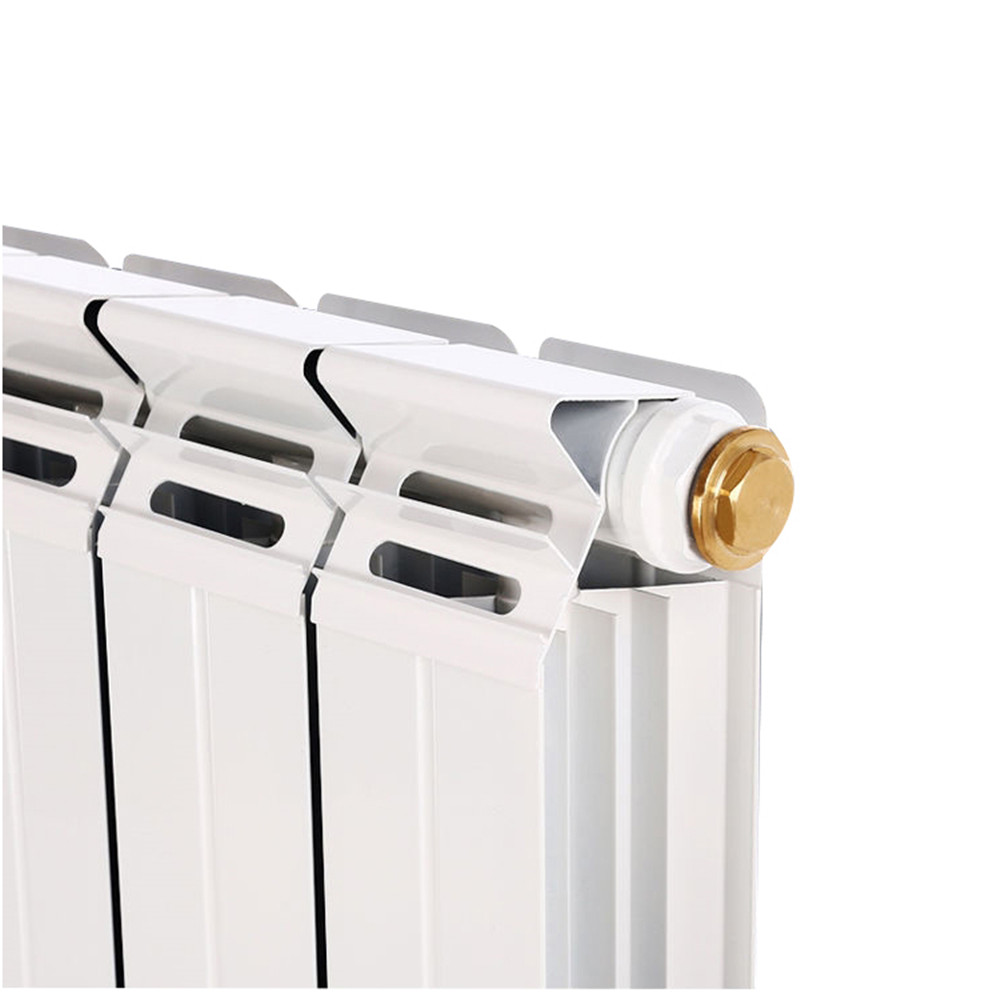 铜铝复合散热片采用先进的内翻边液压胀接技术制造,的工艺参数能完全消除铜管与铝型材管之间的间隙,该散热器热媒流经的联箱管及散热管全部为紫铜管,抗腐蚀性强,无须做内防腐处理。因此,它具有良好的抗碱性水腐蚀能力。我国现在的铜铝复合柱翼散热器,在高碱度水质条件下,如果年腐蚀率按0.005mm/年分析,可有50年的耐蚀年限,在此条件下留有充分的余地,也可保证散热器的使用寿命30年以上。